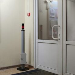 The Atomtex AT920 and AT920B radiation monitors utilize gamma radiation smart probes. The monitoring process has two stages. In the first stage the monitors measure natural ambient gamma radiation in the background. The smart probe controller uses this measured value to calculate and set the threshold radiation level, i.e. alarm level. In the second stage the dosimeter continuously controls gamma radiation, calculates count rate level and compares the values to threshold level value. When the threshold level is exceeded the audible and visual (red light) alarm is activated to inform staff about detection of gamma radiation source. This system allows a radiation monitoring network from multiple pedestrian radiation monitors (up to 32 monitors) controlled by PC with bundled dedicated software installed. A Personal computer can be used to display status of each connected pedestrian radiation monitor, its location on monitored site plan, keeps alarm records and logs. The video recorder allows logging of video frames of the monitored site.